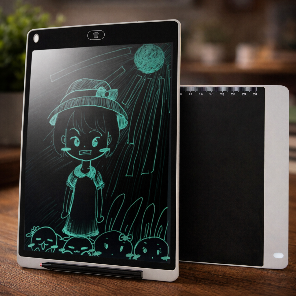 Cette ardoise électronique est aussi idéale pour dessiner. Les enfants peuvent créer des dessins, des formes, sans salir la maison ni gaspiller du papier. Ils effacent et recommencent autant de fois qu’ils veulent, ce qui développe leur créativité tout en s’amusant.